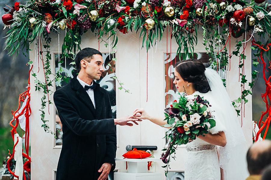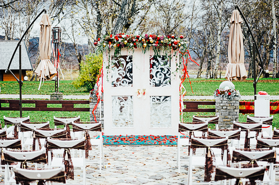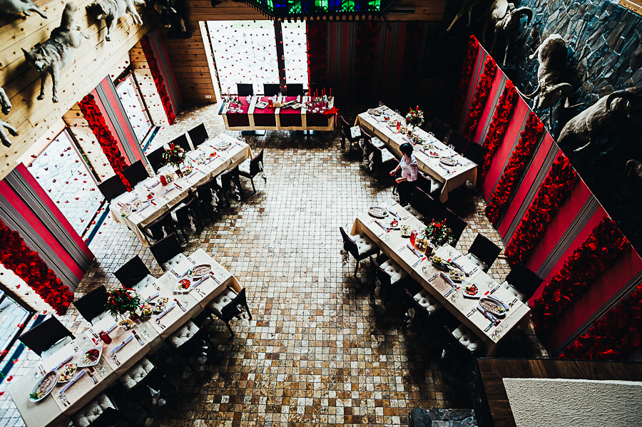 Эта свадьба проходила поздней осенью в уютном и невероятно красивом месте под названием парк-отель "Северные приключения". Свадьба была проведена в кругу самых близких людей, в теплой и уютной обстановке. Перед регистрацией и банкетной частью на втором этаже было отведено место для фуршета, где приглашенные гости могли спокойно пообщаться под живую музыку гитариста и популярные песни в исполнении очаровательной девушки. Регистрация проходила на улице прямо перед зданием главного корпуса. Организацией и оформлением занималось свадебное агентство "Аркадия букет". Оформление было в красных тонах, все было стильно, гармонично и со вкусом. Съемка прогулки по желанию молодоженов проходила в другой, не свадебный день. Свой свадебный день они решили провести в кругу близких людей. Предлагаем Вам посмотреть как это было...