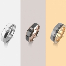Парные классические обручальные кольца из серебра и золота, с карбоном и керамикой, с бриллиантами и фианитом легендарного ювелирного дома GRAF KOLCOV..